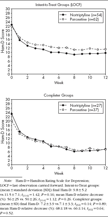 - MULSANT, B. H. et al. A Twelve-Week, Double-Blind, Randomized Comparison of Nortriptyline and Paroxetine in Older Depressed Inpatients and Outpatients. The Americam Journal of Geriatric Psychiatru, 2001.